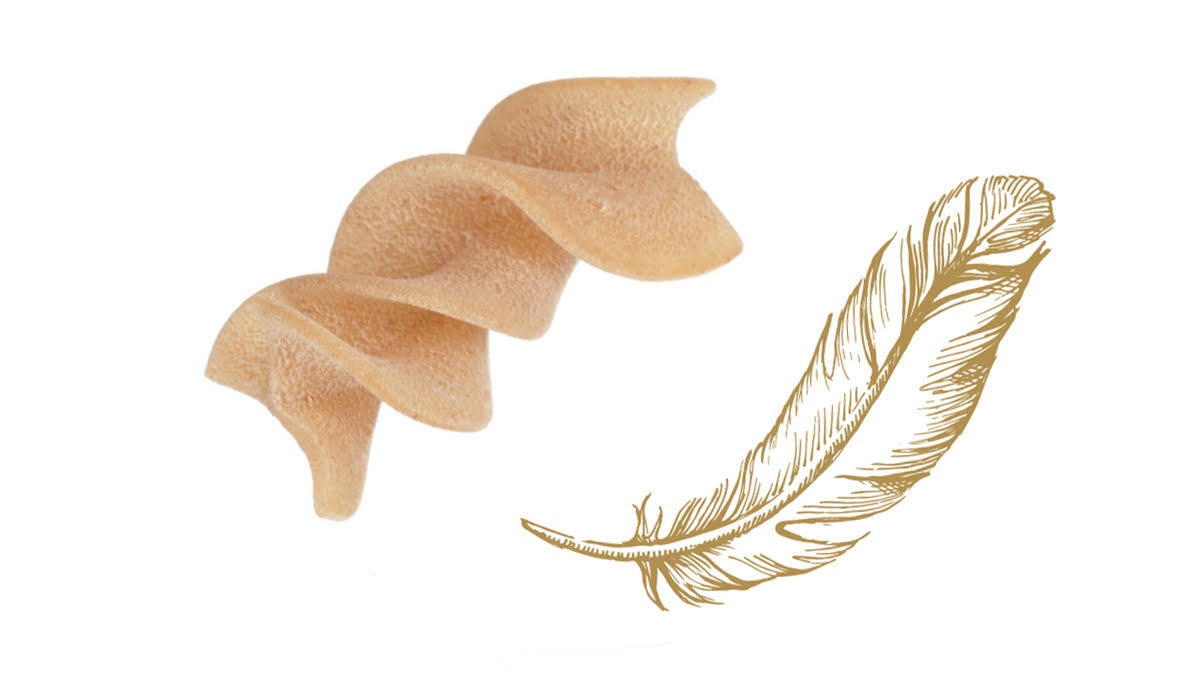 Una pasta artigianale corta e rustica, la macinazione a pietra, la trafilatura a bronzo, la lenta lavorazione ed essiccazione consentono di preservare tutte le proprietà nutritive ed organolettiche del prodotto: dedicata a chi ama il formato corto, perfetta con sughi a base di pesce e di verdure.